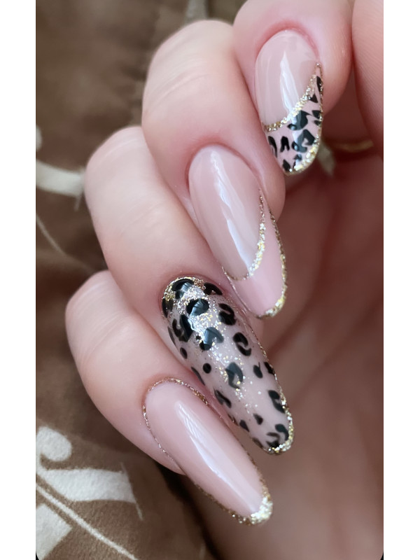 6. V prípade kreslenej francúzskej - priamo aplikujte niektorý z nude odtieňov, spracujte a nakreslite francúzku bielu s tenkým gélom (Bella, Renesmee)